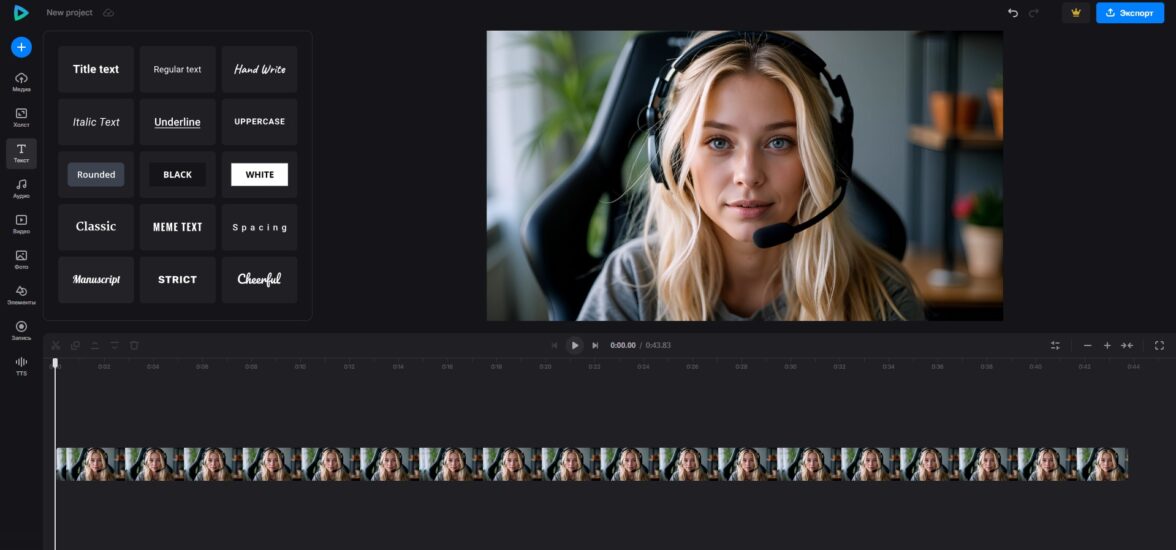 Софт оснащен продвинутыми инструментами для озвучки подкаста и улучшения аудиоряда. Он позволяет настроить уровень громкости или полностью заменить исходную звуковую дорожку, записать голос с микрофона, добавить аудиоэффекты. В программе также есть шаблоны титров и коллекция готовых текстовых стилей. Экспорт ролика возможен в 30+ форматах. Предусмотрена адаптация видео для публикации в сети.
