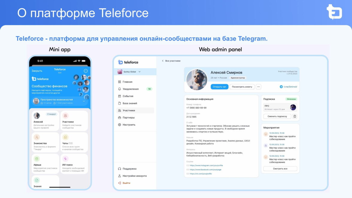 Меня зовут Николай. Мы с командой создали Teleforce — платформу для управления коммуникацией в телеграм-сообществах. И поскольку мы варимся в теме комьюнити маркетинга, я не смог упустить из вида новость от «Т-Банка» о создании сообщества предпринимателей на базе мини-аппов.