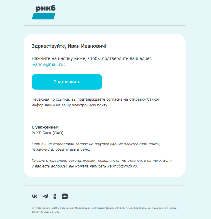 РНКБ — ещё один пример лаконичного письма с акцентом на CTA.