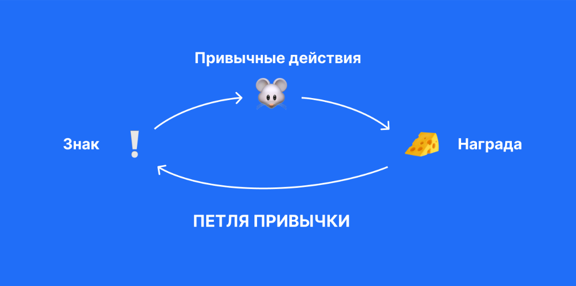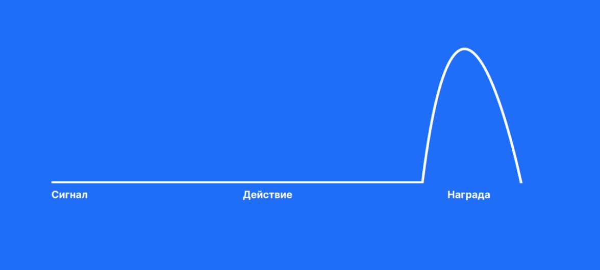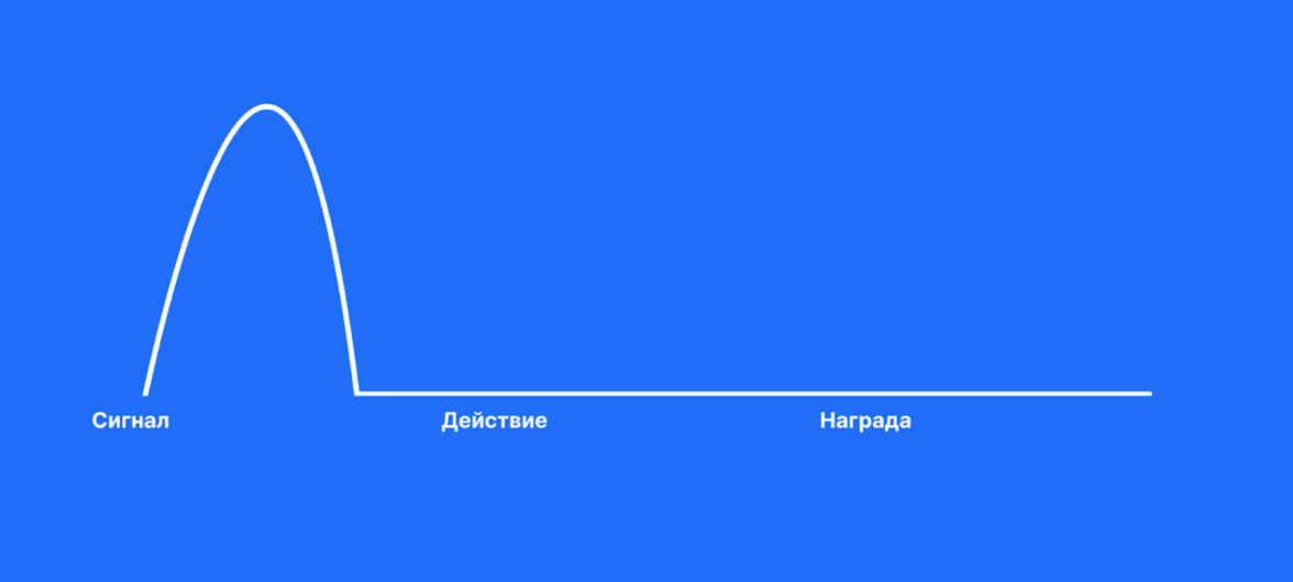Чарлз Дахигг в книге «Власть привычки» описал схему формирования привычки из трёх этапов: сигнала, действия и награды. Её открыли нейробиологи Массачусетского университета. Проиллюстрируем, как это работает в продукте.