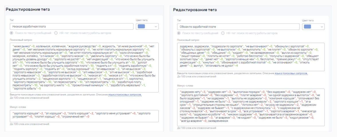 Попутно с корректировкой тональности работали с настройкой тегов проблем соискателей: