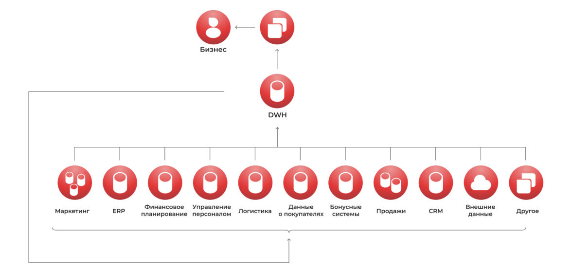 Информация о продажах, реакциях на маркетинговые кампании, логистических операциях, пользовательской активности и обращениях в поддержку поступают из множества разрозненных систем. Внедрение DWH в e-commerce позволяет собрать сведения из всех программ в единую структуру, обеспечить их очистку, нормализацию и связку между собой.