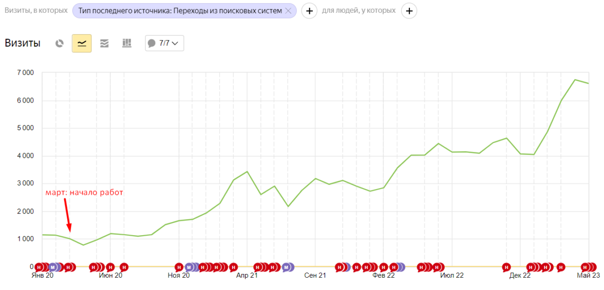 Сейчас наше агентство ведет на этом сайте контекстную рекламу. Работы по SEO не проводятся. Но у нас есть статистика обращений за последние 2 года из поиска: