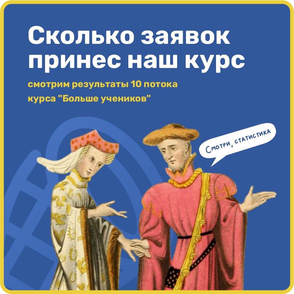 Напомним, что мы не только «учим» вас и вашу команду продажам (и всем процессам привлечения), но и подключаем таргетолога и даем вам заявки за то время, пока идут занятия.