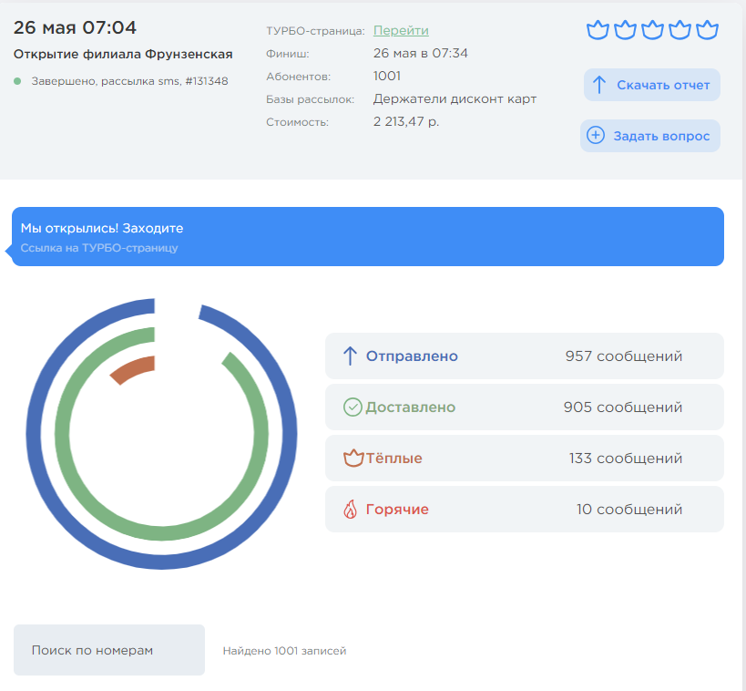 Отслеживание номеров, с которых был переход на ваш сайт, и сегментация абонентов в личном кабинете. Это позволяет анализировать эффективность рассылки и корректировать стратегию.