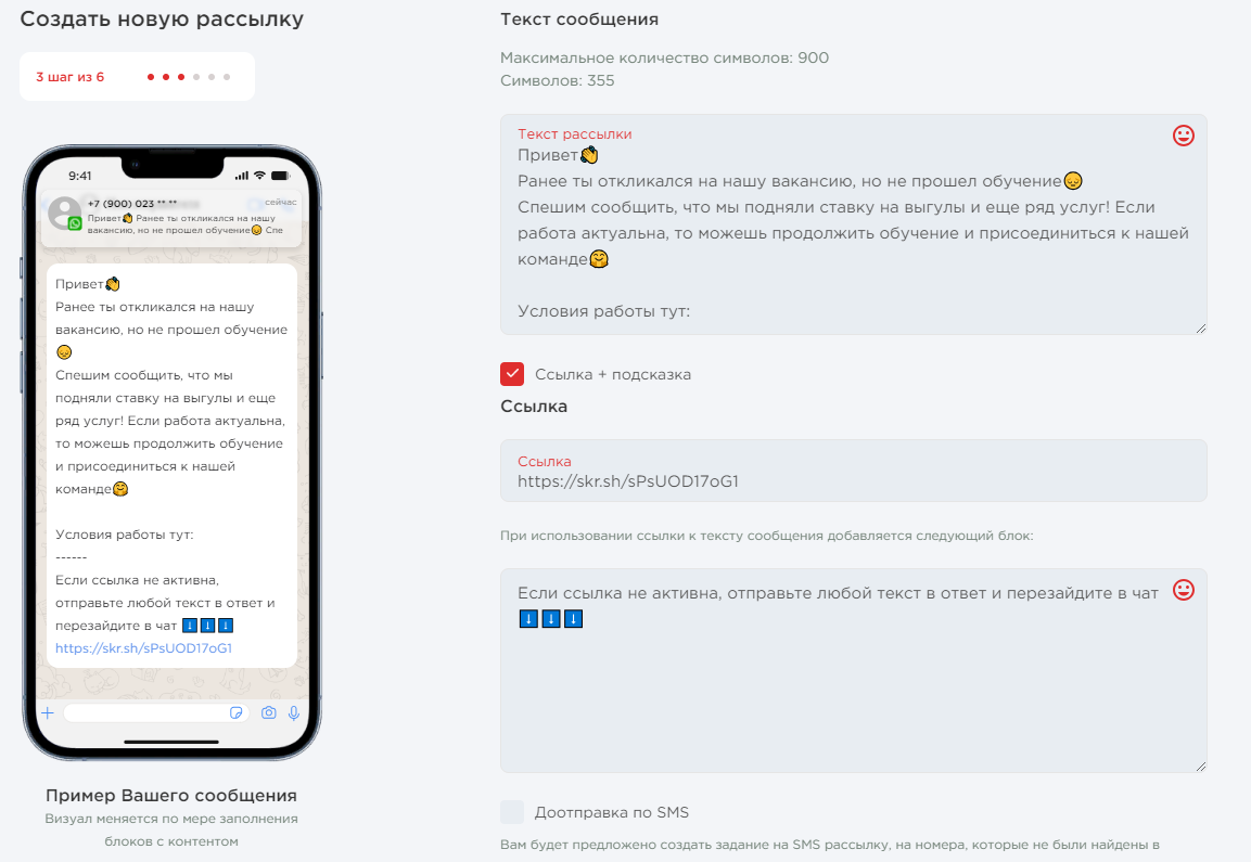 Рассылка по SMS и во все мессенджеры. Это позволяет охватить максимальное количество потенциальных клиентов.