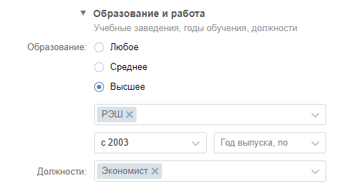 Настройка таргетинга по образованию и работе в рекламном кабинете ВКонтакте