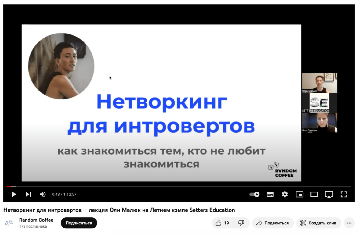 Этот вебинар — для людей, которые много раз слышали, что нетворкинг это классно, но не нетворкаются, потому что интроверты — и переживают, что упускают возможности. И тут появляется Random Coffee, который берет на себя первый контакт (самое сложное)