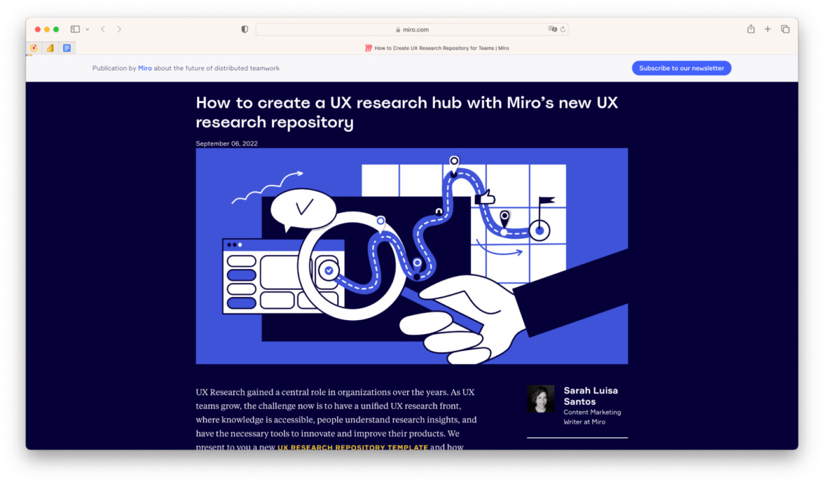 Статья в блоге Miro о том, как использовать сервис для проведения UX-исследований. Там еще много подобных статей, направленных на суперузкую аудиторию