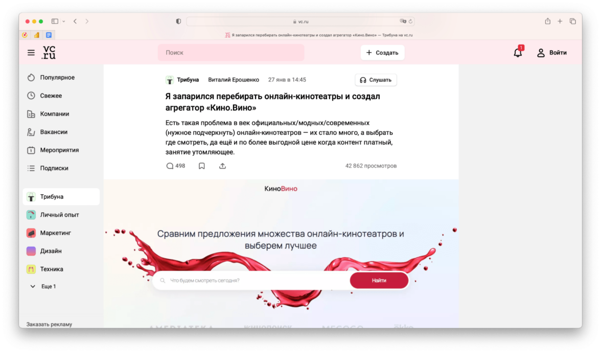 На VC такие заходы здорово работают в «Трибуне» — разделе про новые продукты. Обычно прямо в заголовке статей обозначают главную боль, которую закрывает продукт. Если боль актуальная, статья попадает на главную и собирает хорошие охваты.