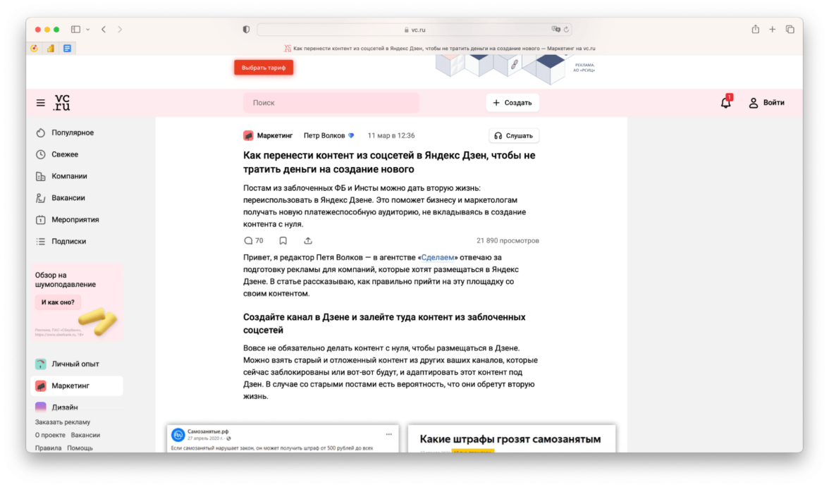 Также с помощью захода через боли можно привязывать продукт к актуальной повестке и выходить на новую аудиторию. Так, в марте у маркетологов появилась проблема: заблокировали Инстаграм и Фейсбук, и теперь они рискуют остаться без контента и аудитории. Мы тогда написали статью на VC о том, как перенести контент с заблокированных площадок на Яндекс Дзен.