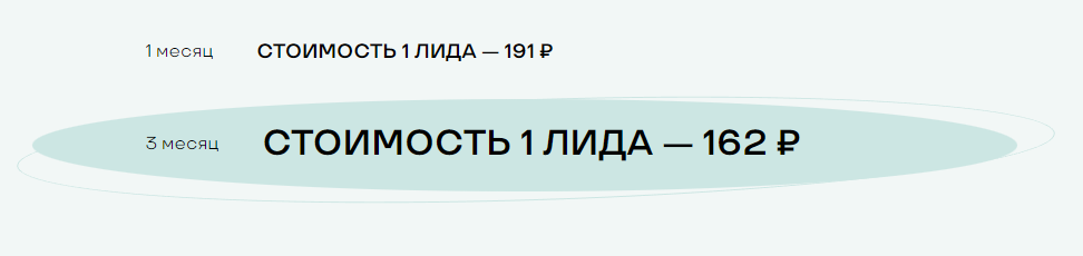 Из графика видно, что по мере работы над рекламой нам удается привлекать все больше заявок, а стоимость 1 заявки при этом снижается: