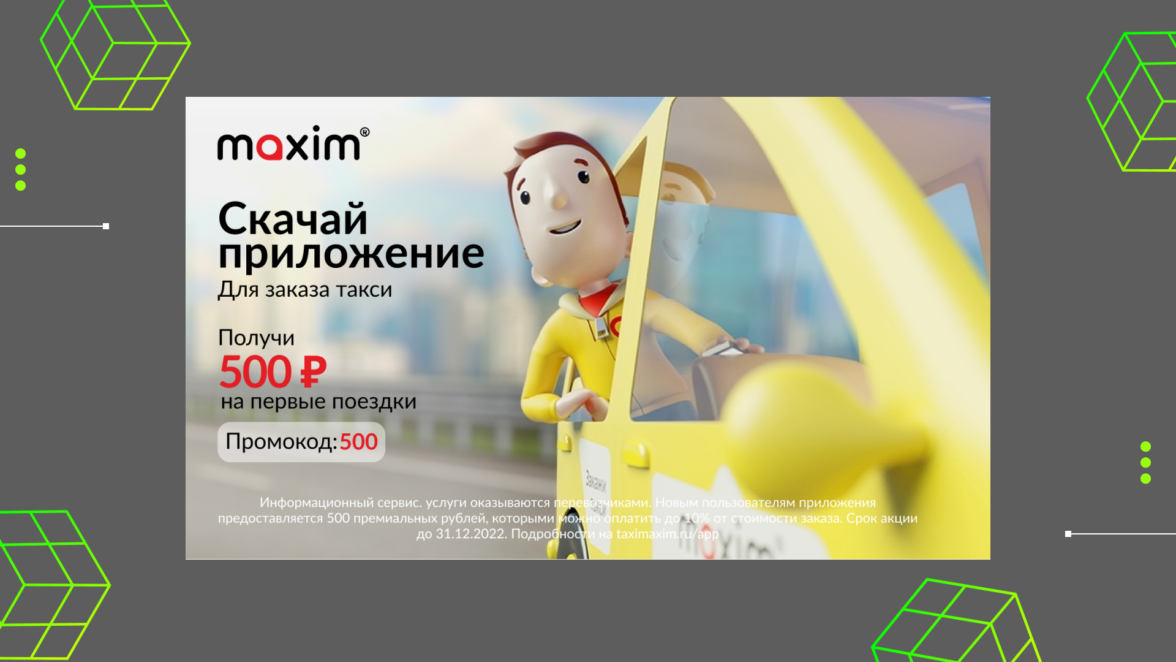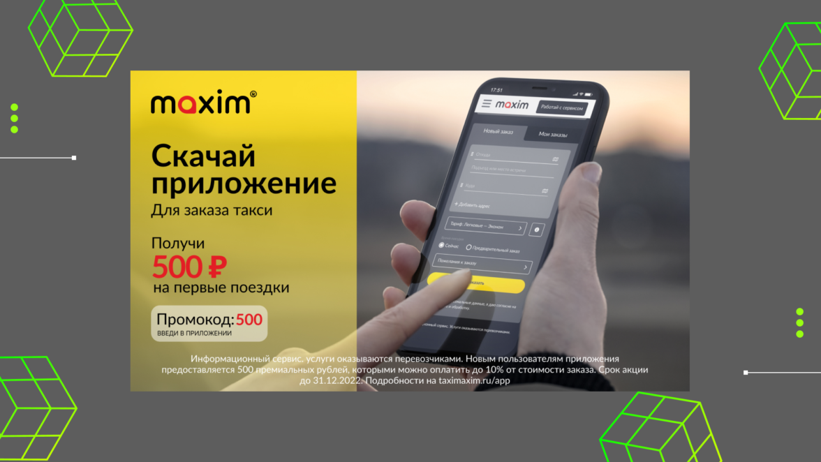 В подходах Adsup.me использовали креативы с изображением интерфейса приложения «Максим» и CTA «Скачай приложение для заказа такси». По изображению понятно, что интерфейс простой и визуально приятный — это подталкивает аудиторию к установке и регистрации вместе с промокодом 500 руб., поделились сотрудники агентства.