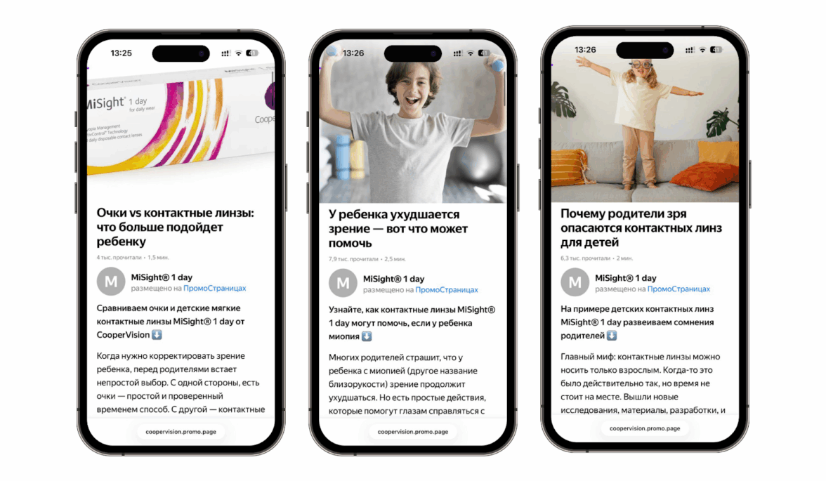 Алгоритмы ПромоСтраниц обучились на поведении аудитории: система автоматически определила, кто из пользователей наиболее заинтересован в теме детского зрения, и стала показывать статьи именно им. Плюс качественный контент — почти половина читателей (45%) дочитали статьи до конца, что сигнализировало алгоритму о высокой релевантности.