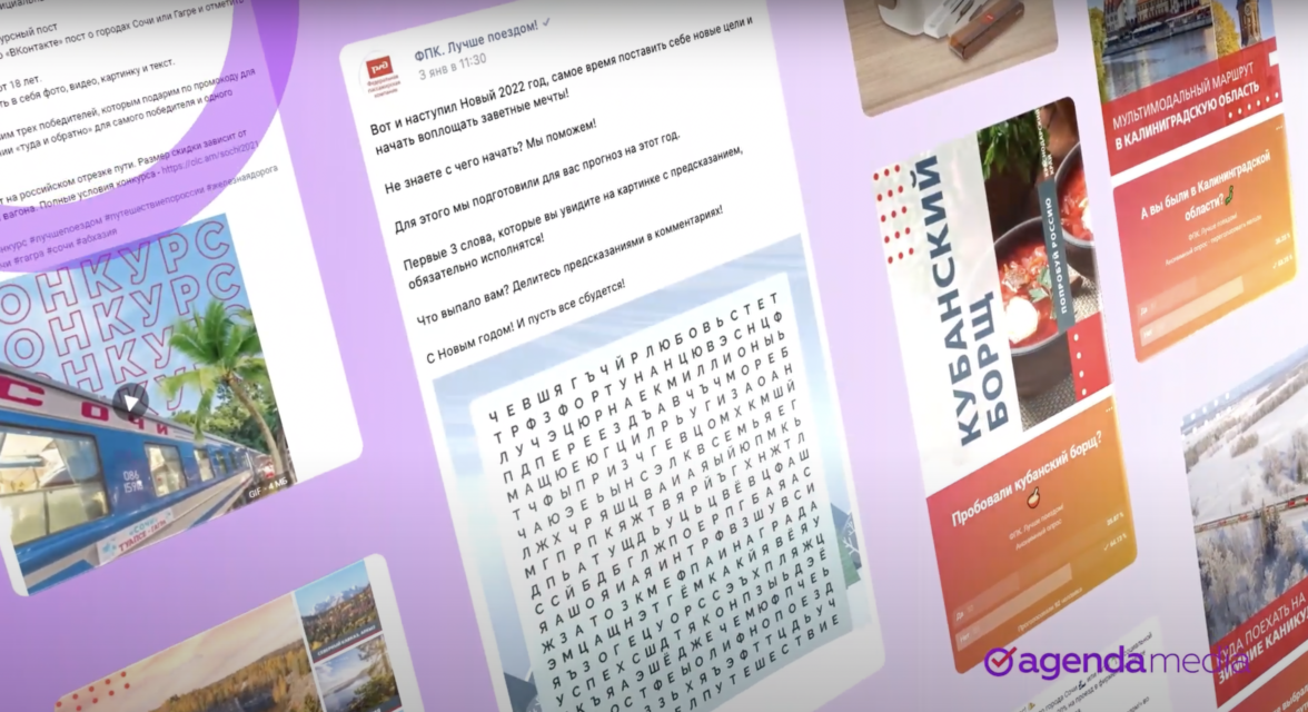 В 2021 году в наше агентство обратилась Федеральная пассажирская компания с запросом на ведение и мониторинг их социальных сетей. Федеральная пассажирская компания (ФПК) — российская компания, дочерняя компания ОАО «РЖД», предоставляющая услуги по перевозке пассажиров и грузобагажа железнодорожным транспортом в дальнем сообщении.