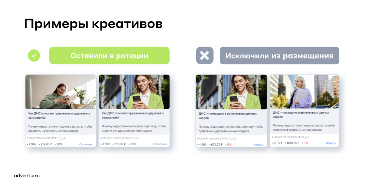Обложки, которые остались в ротации, показали высокий процент дочитывания и низкую стоимость внешних переходов. По мнению экспертов агентства, это связано с тем, что комбинация обложек и заголовков лучше всего соответствовала контенту статьи и была привлекательной для конечного пользователя. Также отметили, что заголовки, которые вовлекают пользователя и дают ему зацепку — какую именно пользу он получит, прочитав статью, работают лучше, чем формулировки, констатирующие факт.