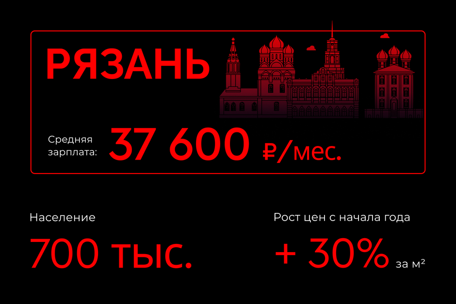 Согласно данным по количеству запросов в Wordstat квартиры бизнес-класса пользуются наименьшим спросом среди остальных классов жилья. Кроме того, по информации ЕРЗ (Единого ресурса застройщиков), Рязань занимает первое место в рейтинге по динамике цен за 1 кв. м в новостройках. С начала текущего года средняя цена за 1 кв. м выросла здесь на 30%.