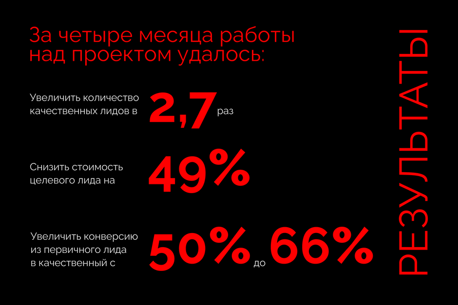 • увеличить количество качественных лидов в 2,7 раз;