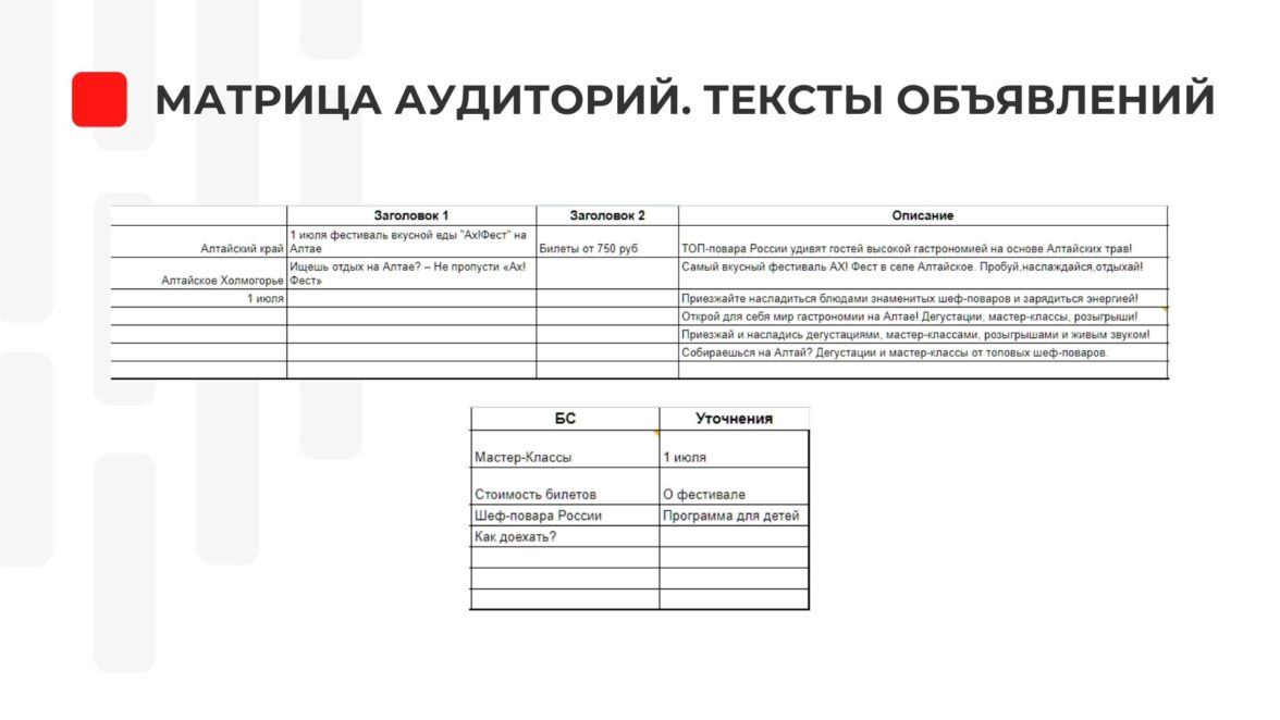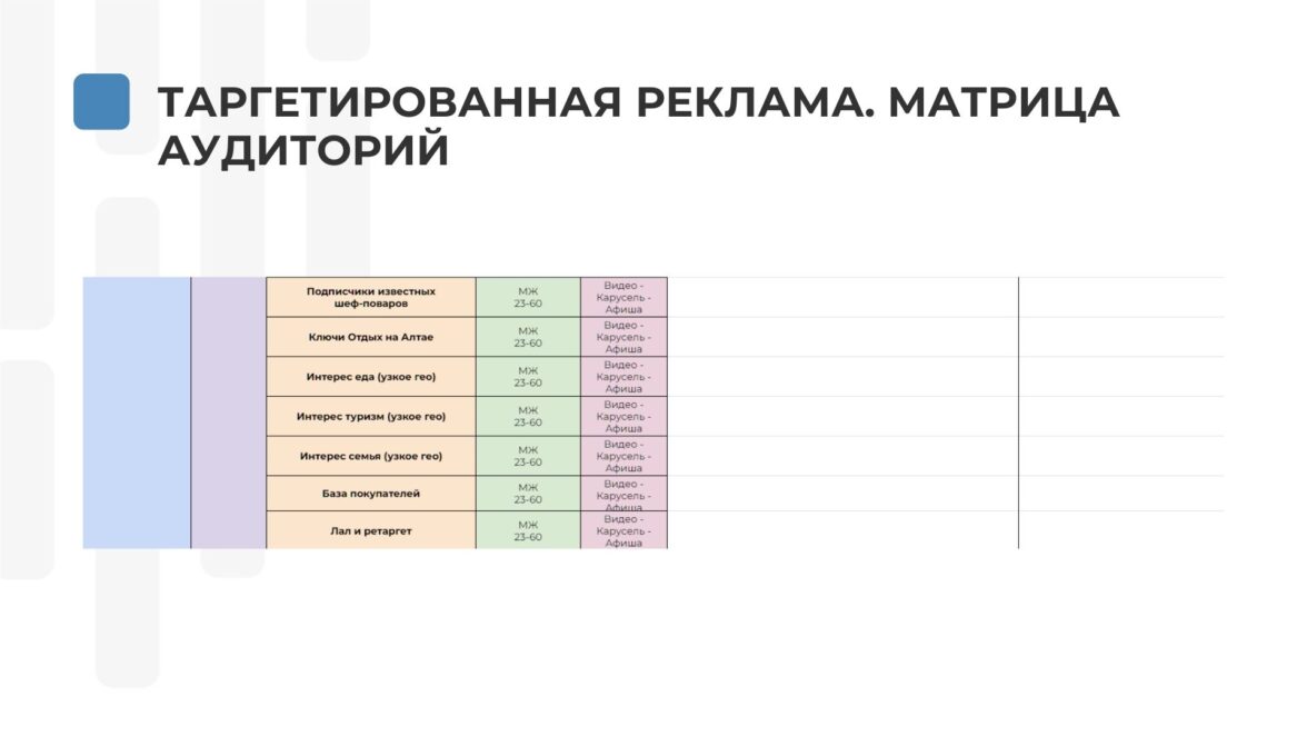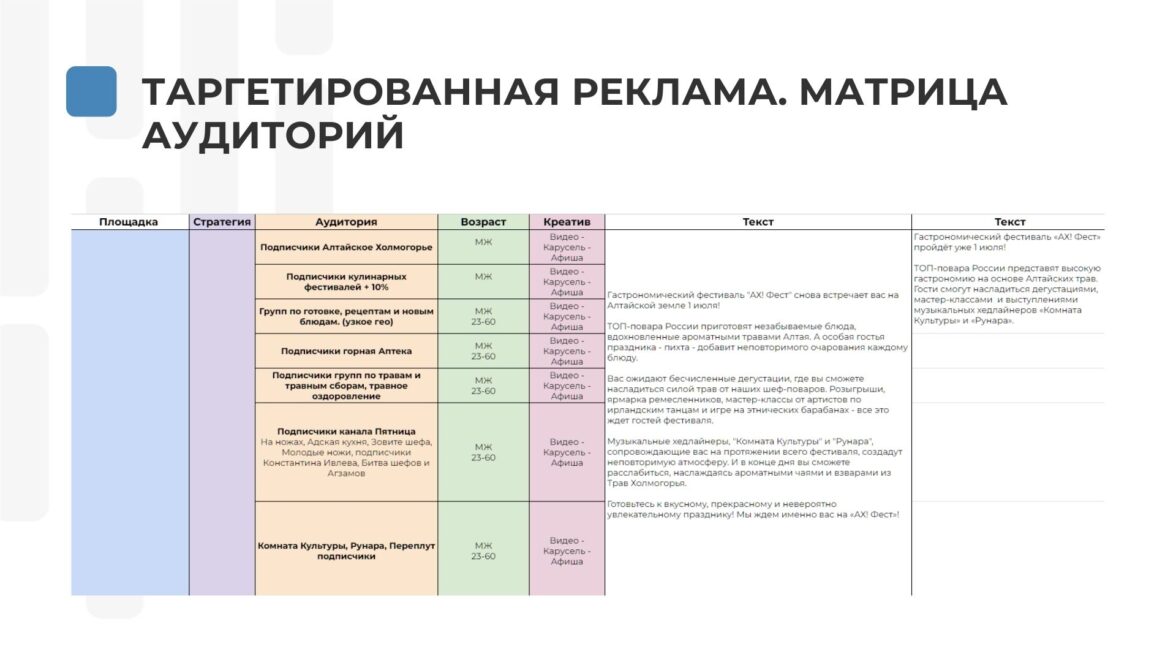 Таргетированная реклама. Матрица Аудиторий. Креативы