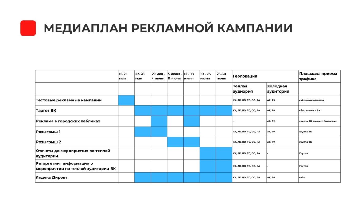 Составить медиаплан продвижения в интернете для достижения KPI.