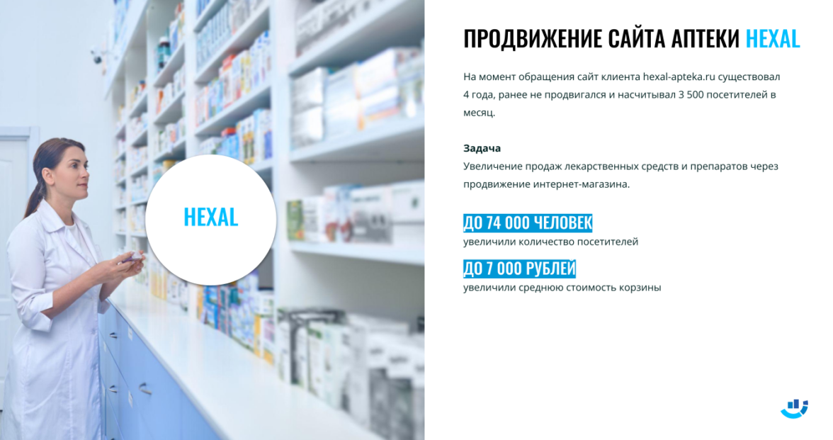 Опыт работы в области фармацевтики и интернет-маркетинга позволил нам углубленно понять эту нишу. Например, около 10 лет назад аптека Hexal стала одним из наших первых клиентов. За это время мы разработали и реализовали множество успешных маркетинговых стратегий.