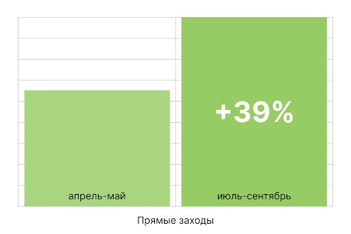 В период запуска медийной рекламы увеличились прямые заходы на сайт.