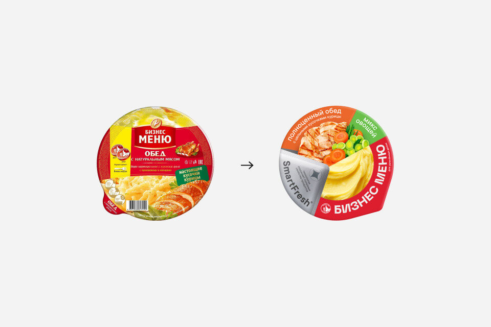 Бренд «Бизнес меню» появился в 2004 году и стал первым продуктом в категории быстрого приготовления с цельными кусочками мяса. Продукт создавался по уникальной технологии, после ребрендинга получившей название SmartFresh®: мясо и овощи упаковываются в многослойный пакет и доводятся до готовности за короткое время при высокой температуре, благодаря чему сохраняются вкус, польза и свежесть без использования консервантов. Несмотря на лидерство в своем сегменте, бренд долгое время не выделялся визуально, не имел ярко выраженного позиционирования и стремительно терял дистрибуцию и продажи.