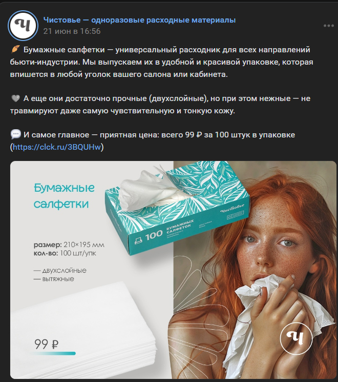 На скриншоте пример одного из постов с оформлением нейросети. По словам команды «Чистовье» клиенты отмечают, что сообщество с новым оформлением сильнее выделяется среди конкурентов и смотрится интереснее