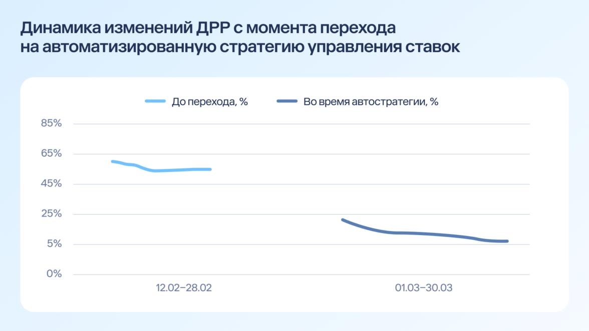 Для брендов с широким ассортиментом автоматизация ставок — это конкурентное преимущество. Алгоритмы прогнозируют рыночные изменения и снижают ДРР быстрее человека.