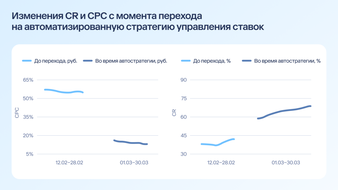 Автоматизированная стратегия управления ставками дала тройной эффект: экономию бюджета, рост видимости товаров и значительное повышение эффективности кампании: