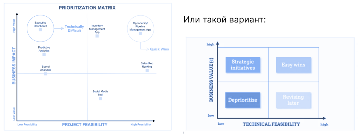 На примере матрицы группируем все задачи стратегии, чтобы определить приоритеты и логическую последовательность действий. Важно, что это позволит выделить задачи, решение которых сразу принесет выгоду бизнесу.