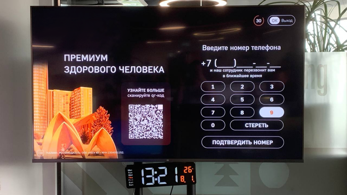 При нажатии на CTA-кнопку (Call to Action — призыв пользователя к определенному действию) открывалась специальная бренд-зона, где юзер мог ввести номер телефона с помощью ТВ-пульта.