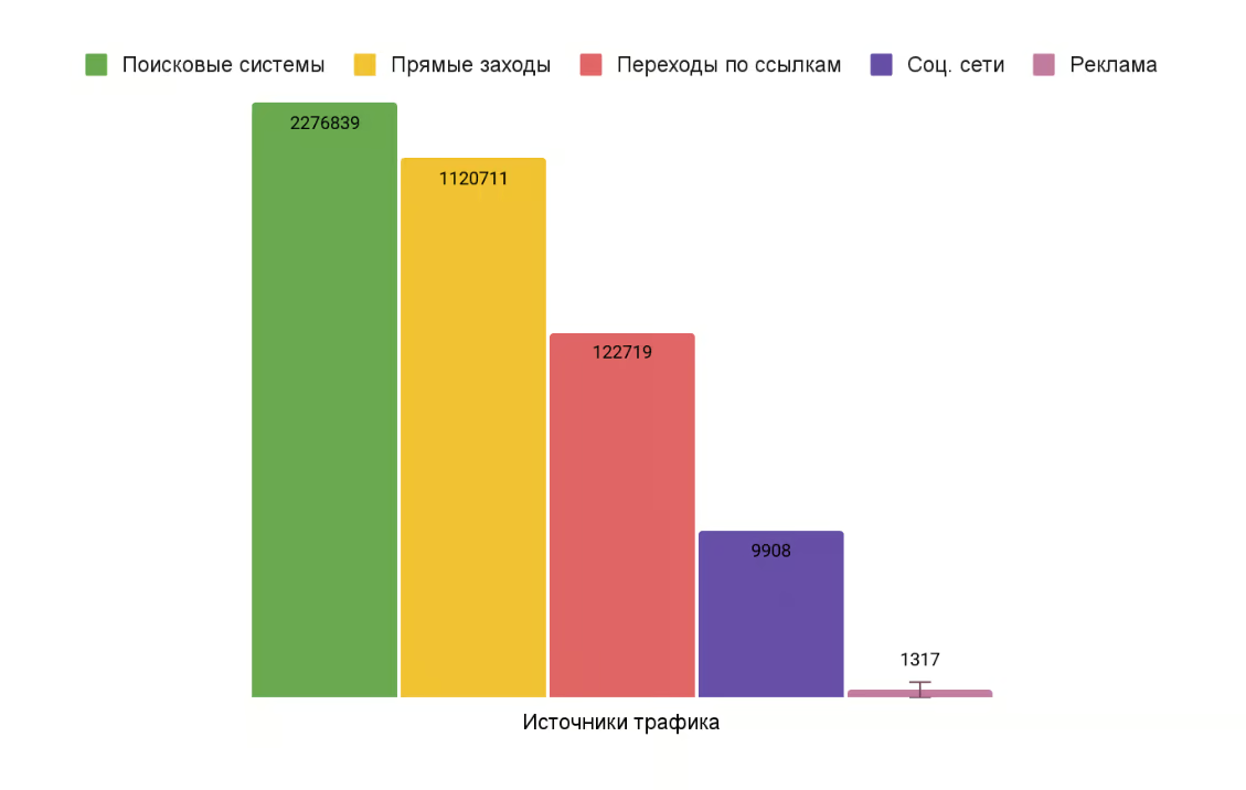 Анализ источников трафика за 2022 год показал, что основное количество посетителей приходит через поисковые системы