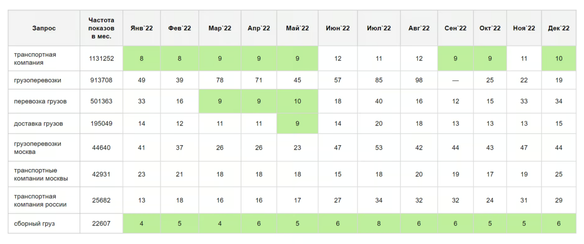 В 2022 году наблюдается положительная динамика по посещаемости из поисковых систем, а также видимости по запросам из группы «грузоперевозки по России».