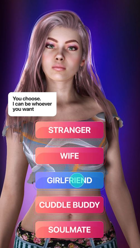 В этом ролике видно, что с виртуальным персонажем можно установить отношения: общаться как с незнакомкой, другом или женой