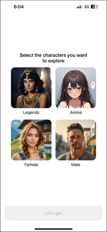 Пользователь может выбрать категорию персонажа для общения. Например, легенду, героя аниме или обычного человека