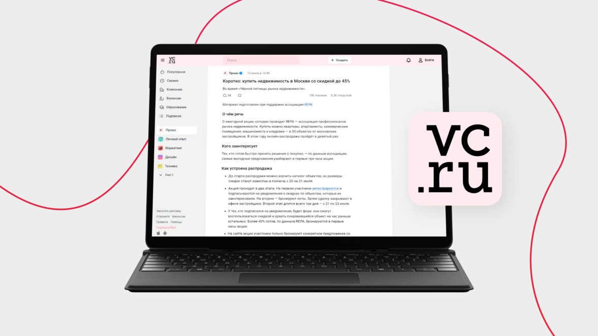 Vc.ru. На vc.ru мы запустили материал в формате «Коротко» — лаконичную новостную заметку от редакции портала, где вся ключевая информация подавалась тезисно: «О чём речь», «Кого заинтересует», «Как устроена распродажа», «Что ещё нужно знать». Мы посчитали, что подача информации в таком виде лучше откликнется аудитории портала, так как пользователи vc.ru ценят площадку как раз за ёмкие и полезные статьи, написанные простым языком.