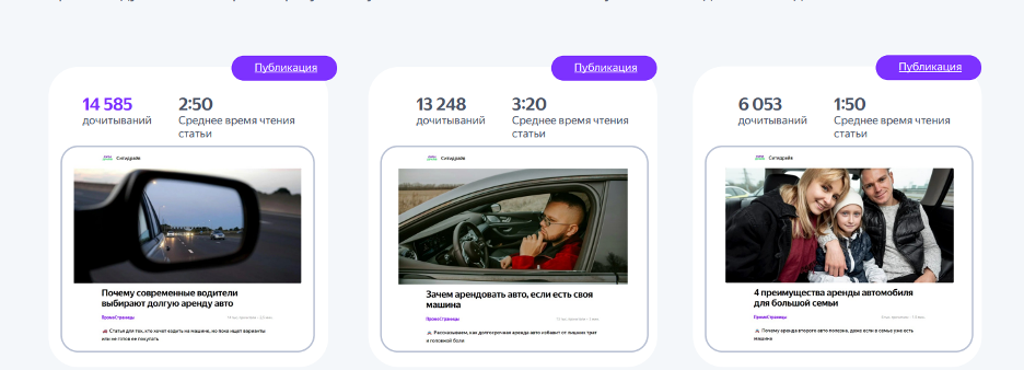 Выбрали стратегию размещения с оплатой за дочитывания. Важно было рассказать о преимуществах подписки на долгую аренду авто, поэтому особенную ценность для нас представляли именно те люди, которые дочитывали статьи до конца.