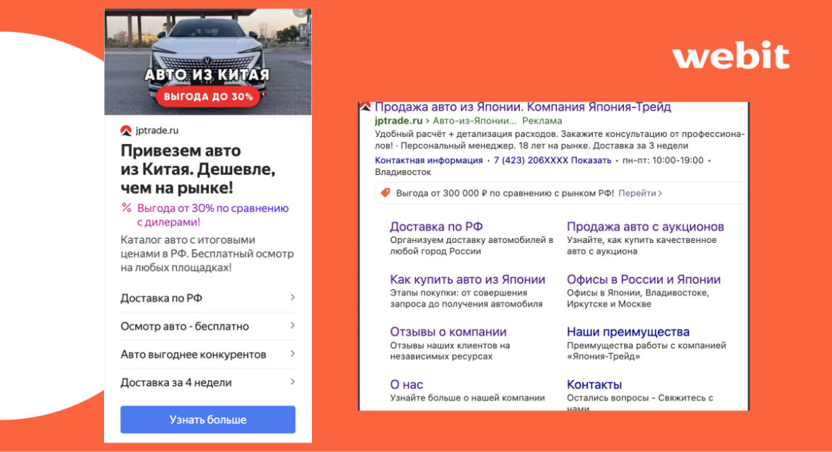 Надо отметить, что конкуренция среди поставщиков азиатских автомобилей сегодня невероятно высока — в многообразии предложений можно легко запутаться. Поэтому УТП в рекламных объявлениях были тщательно проработаны отделом рекламы и демонстрировали сильные стороны компании, которые были наработаны в течение 18 лет: