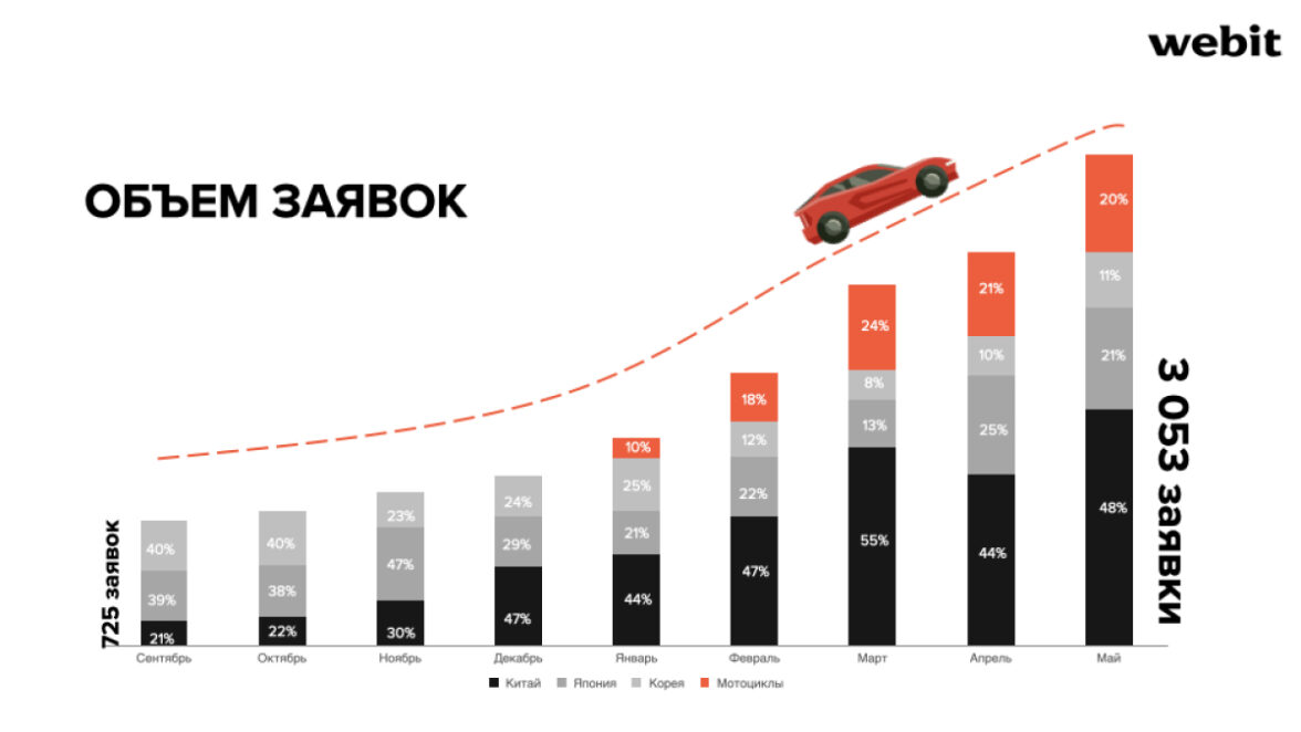 В августе 2023 года «Япония Трейд», которая 18 лет зарабатывала себе репутацию надежного поставщика автомобилей из Японии и Кореи, была вынуждена сменить флагманские направления на китайский автопром. Вместе с перестройкой логистических цепочек компании потребовалось сменить и digital-стратегию — теперь «Япония Трейд» выходила на быстро растущий высоко конкурентный рынок продаж китайских авто.