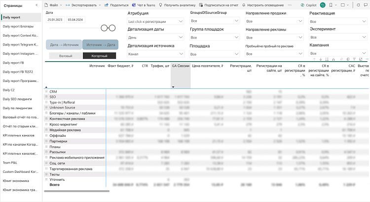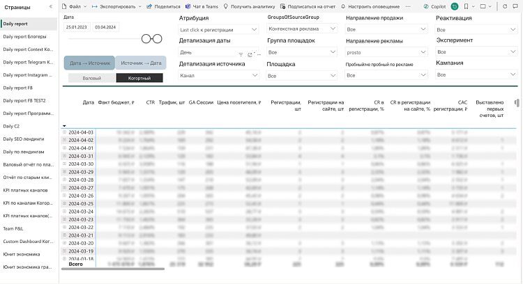 Мы углубили ежемесячную аналитику до ключевых слов, адсетов, креативов и привязали её к когортам, а не к месяцам, как было раньше. Сразу стало видно, какие каналы для привлечения работают лучше, а что можно отключить. Внедрение такого анализа помогло прогнозировать доход от клиентов на ранних этапах.