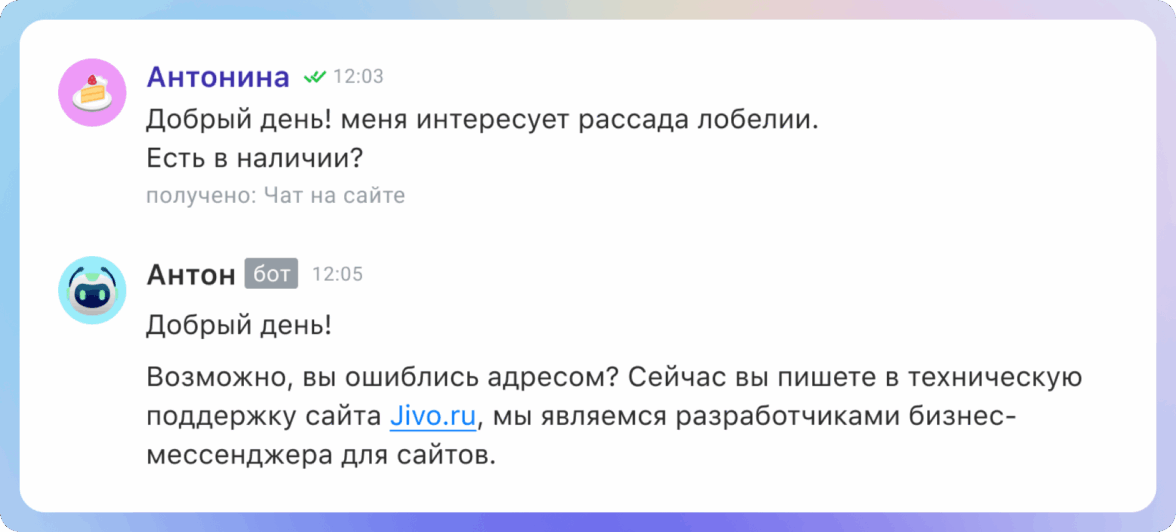 Вопросы, не относящиеся к Jivo, поступают в поддержку регулярно. Будь то спам-рассылка или случайное сообщение, подобные диалоги — дополнительная нагрузка на операторов.