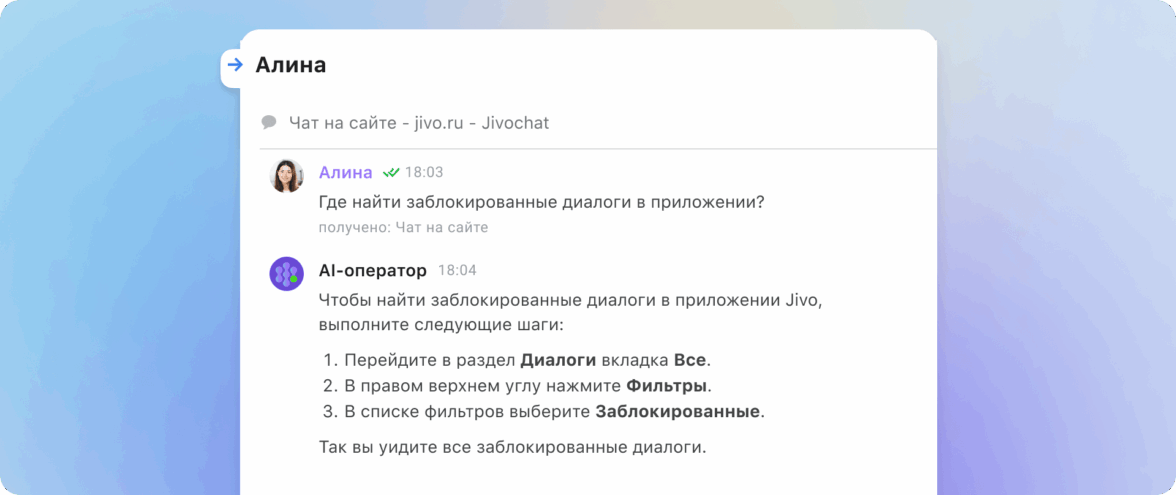 В Jivo AI-оператор отвечает клиентам в следующих каналах связи: