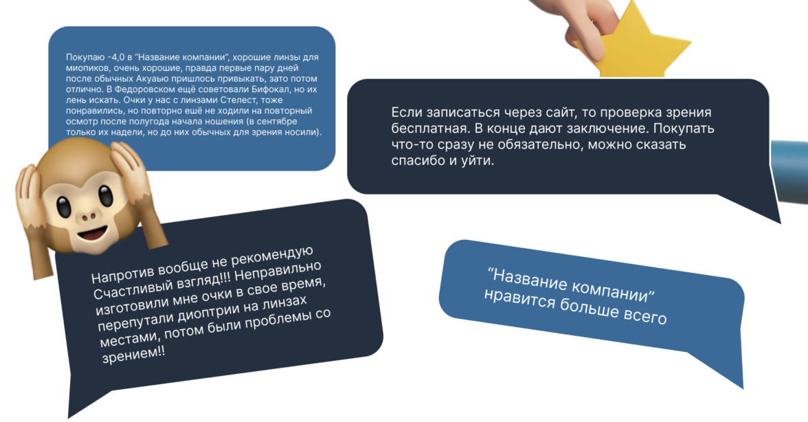 Для покупателей важна доступность и возможность получить контакт с живым специалистом, поскольку тема здоровья очень личная. При поиске удобной точки продажи (через поисковые системы, куда интегрированы гео-сервисы, или через самостоятельные приложения) покупатель находит ближайший для себя филиал компании и может оценить его. Для целевой аудитории важна «региональная идентичность»: клиенты компании состоят в домовых чатах, городских и районных сообществах, являются достаточно активными в сети людьми. В процессе работ по ORM становится ясно, что именно гео-сервисы являются «болевой точкой», поэтому им, как источникам, стоит уделять особое внимание.