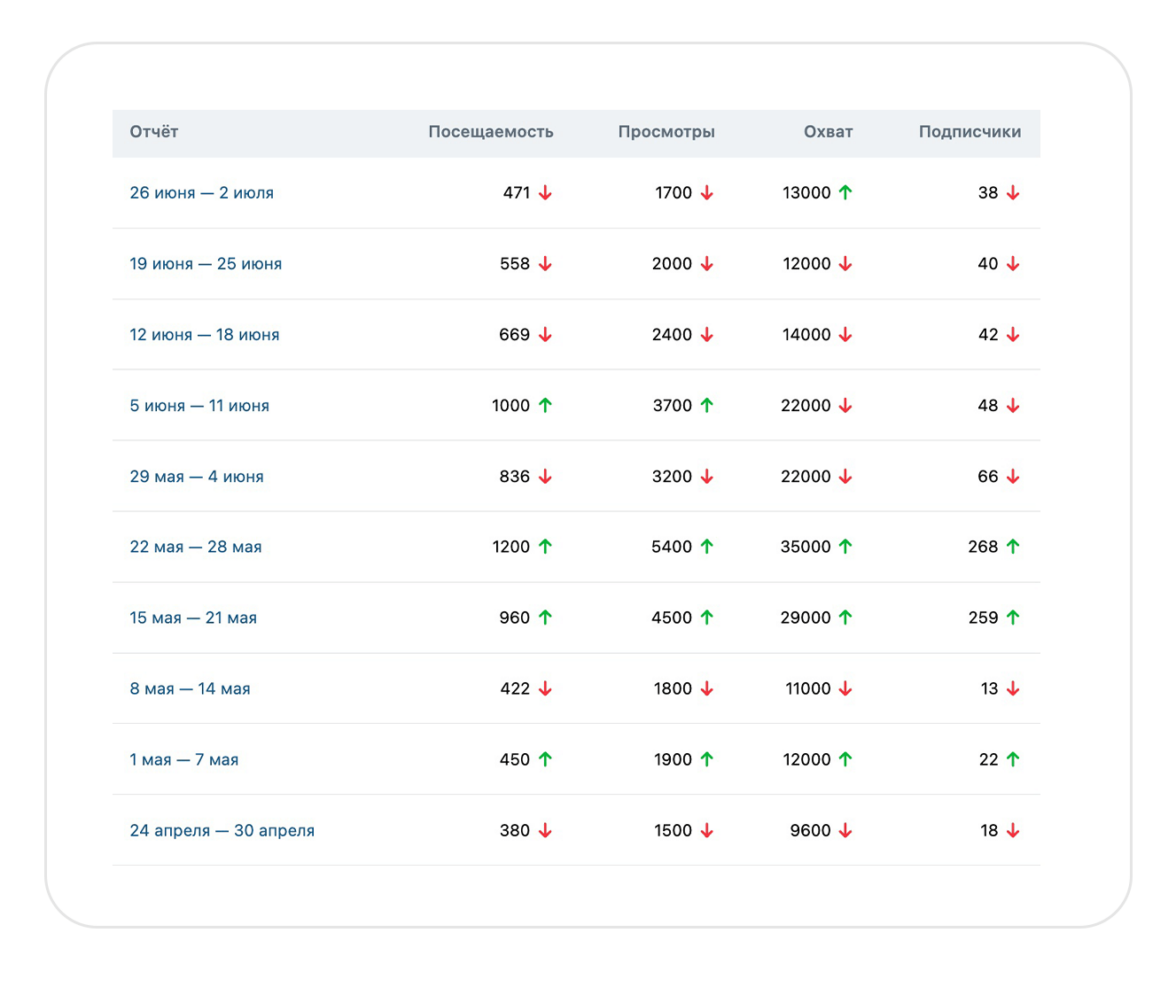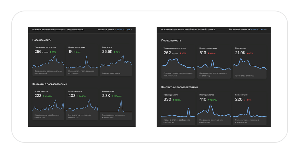 Общая динамика показателей из сообщества ВКонтакте после второго месяца работы