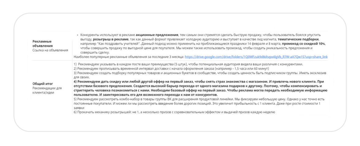 Рекомендации по продвижению для заказчика, которые составили на основе анализа конкурентов