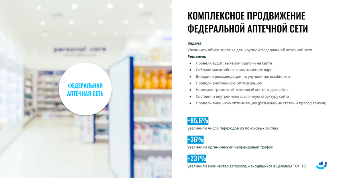 Кейс: комплексное продвижение аптеки. План перевыполнен: как утроить число топовых запросов для Федеральной аптечной сети