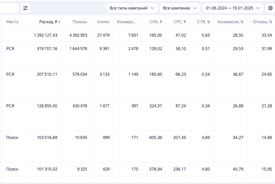 Перед стартом провели полный технический аудит ранее запущенных рекламных инструментов, на котором была выявлена интересная особенность по 1 рекламному инструменту: