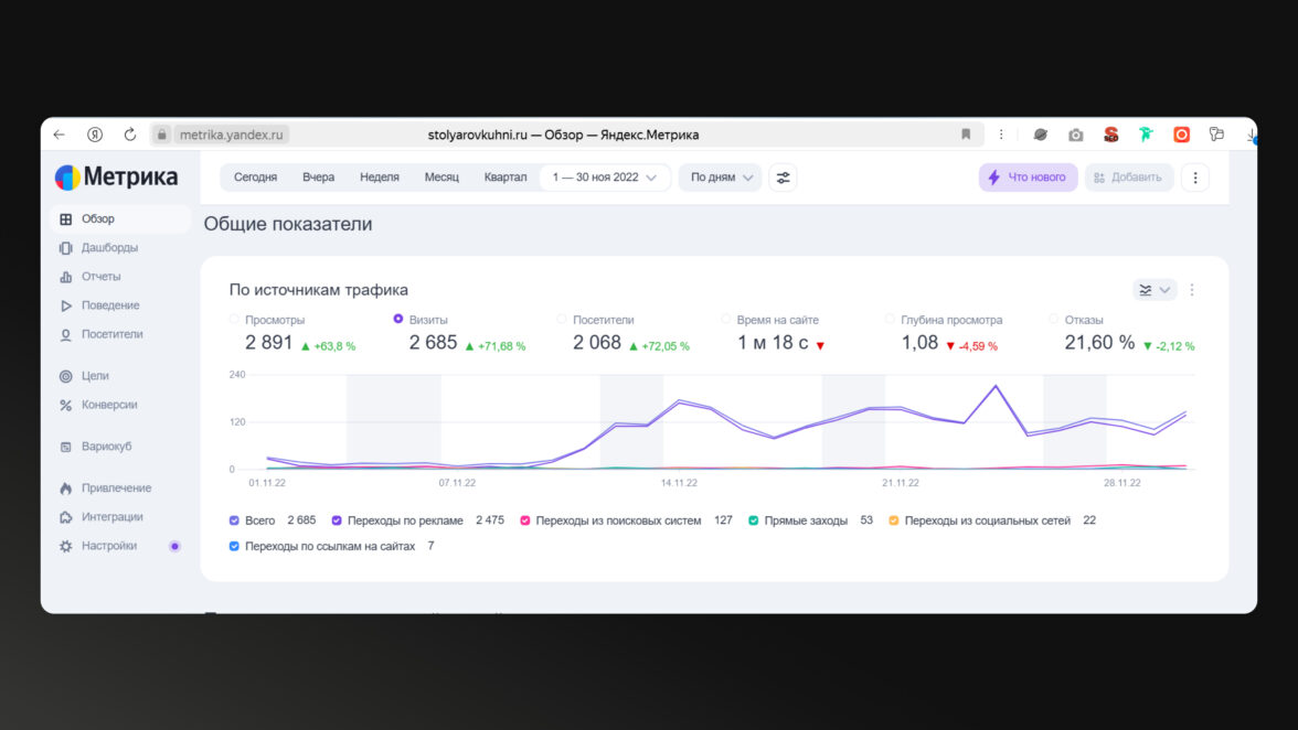 Первый месяц запуска рекламы на старом сайте в 2022 году