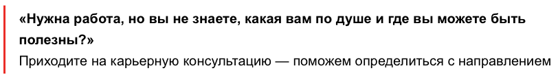 – Дополнительный продукт для тех, кто «ещё не готов» — карьерные консультации